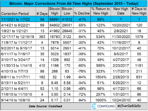 History of bitcoin declines since September 2010