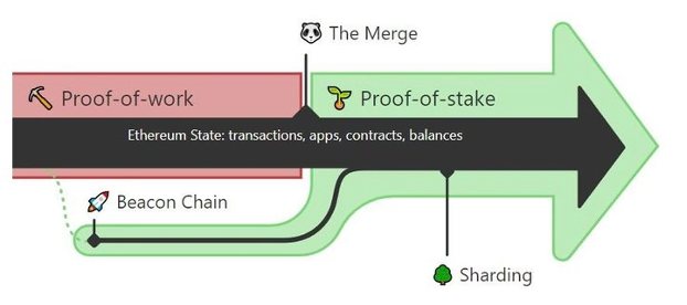 The Ethereum network’s transition from PoW to PoS involves the following steps: