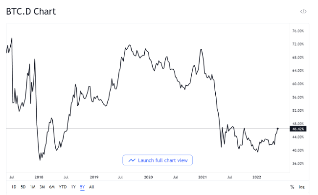 Over the past 10 years, the crypto-currency industry has moved through series of boom and busts. But bitcoin has remained on a long uptrend and preserved its leadership status. Bitcoin had the largest market capitalization in 2013 and in 2018. That's still the case today. In fact, bitcoin dominance (i.e., the weight of bitcoin relative to other cryptocurrencies) now seems to be on the rise again after falling from 75% in 2018 to 40% in early 2022.