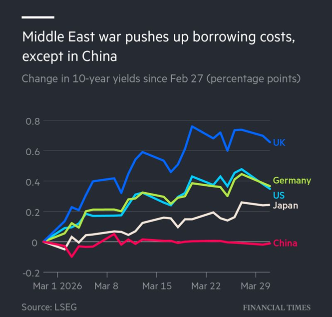 While global debt markets have been hit by rising energy prices and inflation since the start of the Iran conflict, Chinese government bonds have largely avoided the sell-off. They have emerged as a relative haven amid global uncertainty.