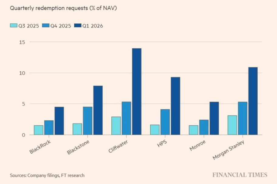 In the first quarter alone, investors requested more than $10bn in withdrawals from major private credit funds. Firms such as Blackstone, BlackRock, and Morgan Stanley have already started limiting withdrawals, approving only about 70% of requests. More updates are expected from other major players, including Apollo Global Management, Ares Management, and Goldman Sachs. Although $10.1bn is small compared to the $1.5tr direct lending market, it is significant relative to the $166bn managed by the affected funds. Private credit has been one of the fastest-growing areas in finance, especially as firms target the $9tr US retirement market. However, rising withdrawal requests in a tighter liquidity environment are starting to test the model. The key question is whether this is a temporary issue or the first sign of deeper structural weakness.