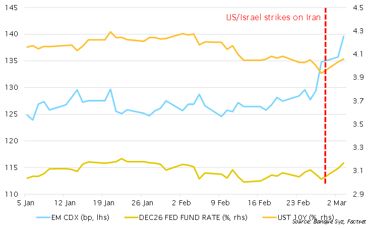 A prolonged conflict combined with elevated oil prices could weigh on Turkey and Egypt, which are net oil importers. Nevertheless, both countries enter this period with stronger foreign-exchange reserves than in the past. The Central Bank of Turkey has also shown a willingness to respond rapidly to financial-stability risks, including through decisive monetary tightening when necessary. Fitch’s Positive Outlook on Turkey in January 2026 highlighted the country’s progress in reducing external vulnerabilities, with debt-to-GDP expected to be only 25% next year.