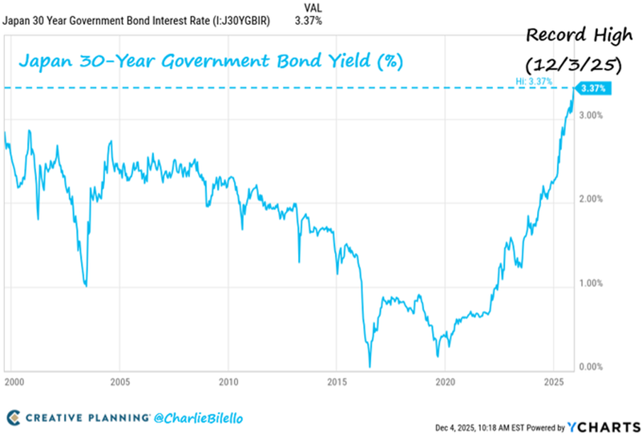 Japan’s 30-year bond yield has surged to 3.37%, the highest level on record. This isn’t just a local story—it raises an uncomfortable question for Washington as well. If the US doesn’t get its deficit and debt spiral under control, this chart may be a preview of what’s coming next.