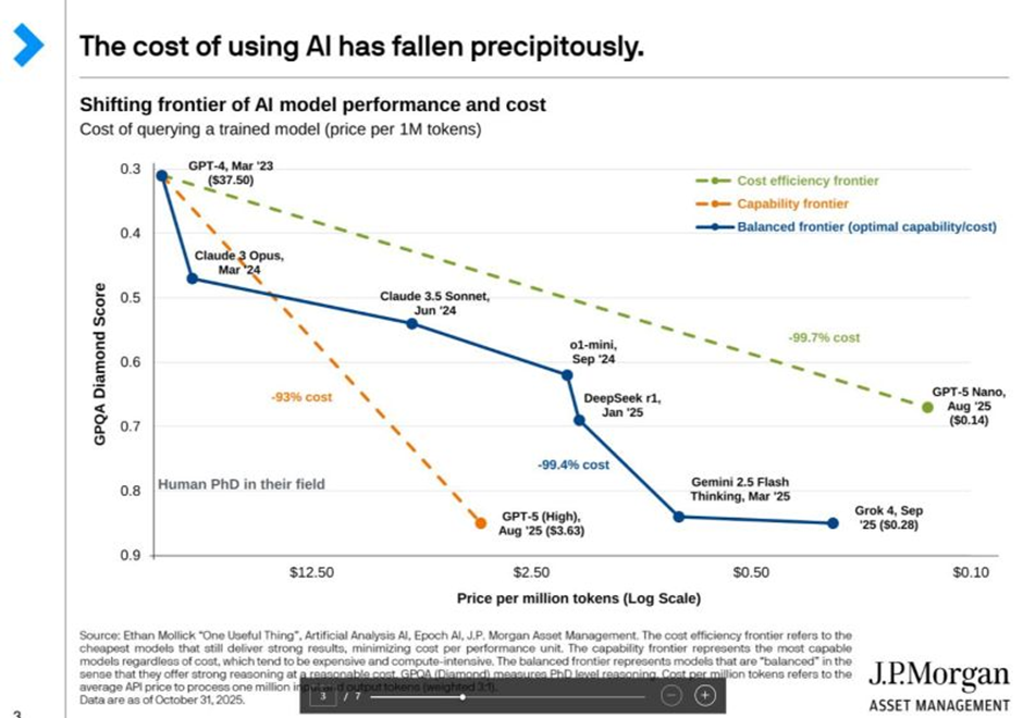 J.P. Morgan just sent a clear warning: the cost of using AI models has collapsed. That’s great news for the spread of AI across every industry, but it’s a potential problem for the companies building the large foundational models—big labs like OpenAI, Anthropic, and others.