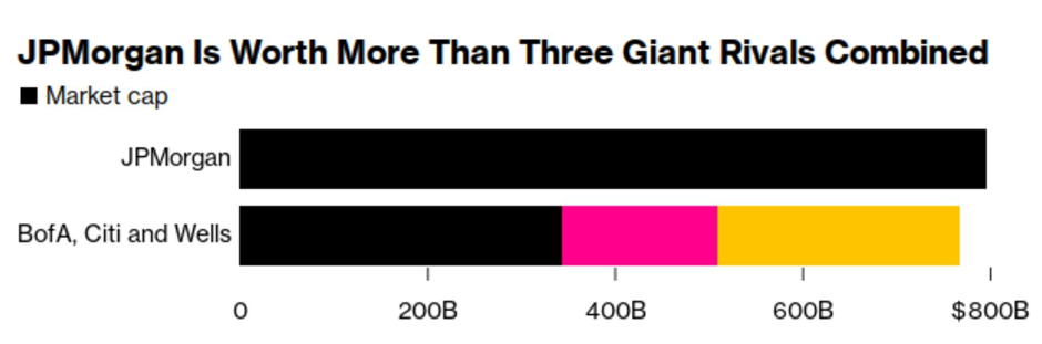 JPMorgan is now worth more than BofA, Citi, and Wells combined