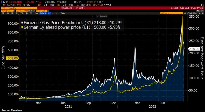 The tone adopted by the European Central Bank (ECB) has also become more hawkish. The market now assigns a probability of almost 100% for a 75 basis point hike in September, followed by another 50 basis points in October.