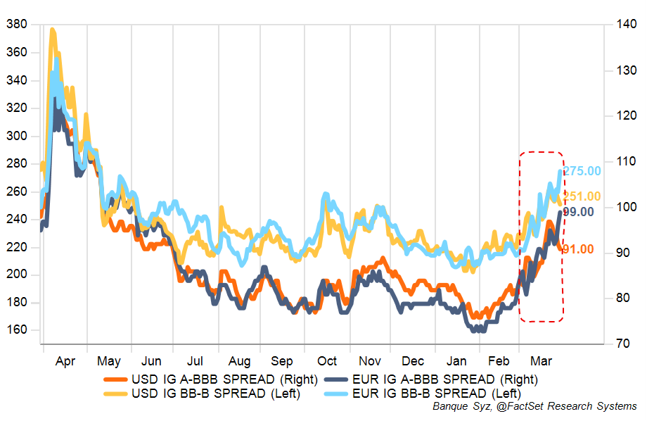 However, with no clear de-escalation in sight between the US and Iran, investors are beginning to reassess the growth impact of a prolonged conflict. A shift from inflation to growth concerns could see market pressure move from rates toward credit spreads.