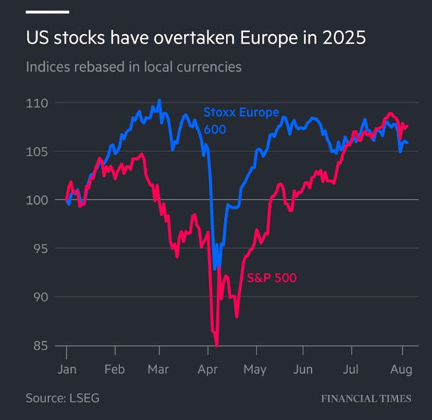 US stocks have overtaken Europe in 2025 (in local currencies)