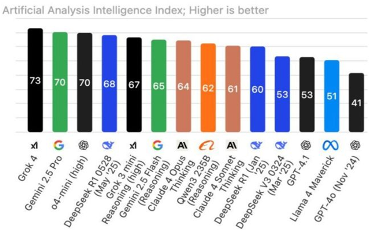 xAI's Grok 4 now ranks as the leading artificial intelligence tool, according to the Artificial Analysis Intelligence Index. Remarkably, they started from ZERO just a few years ago.