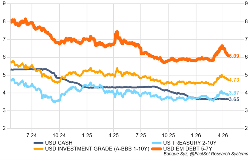 EM corporate credits followed a similar recovery trend. Latin American high yield corporates have proved the most resilient segment, as they benefit from energy producer returns and the conflict hit corporates differently across regions. The worst performers were property and energy companies directly exposed to the conflict.