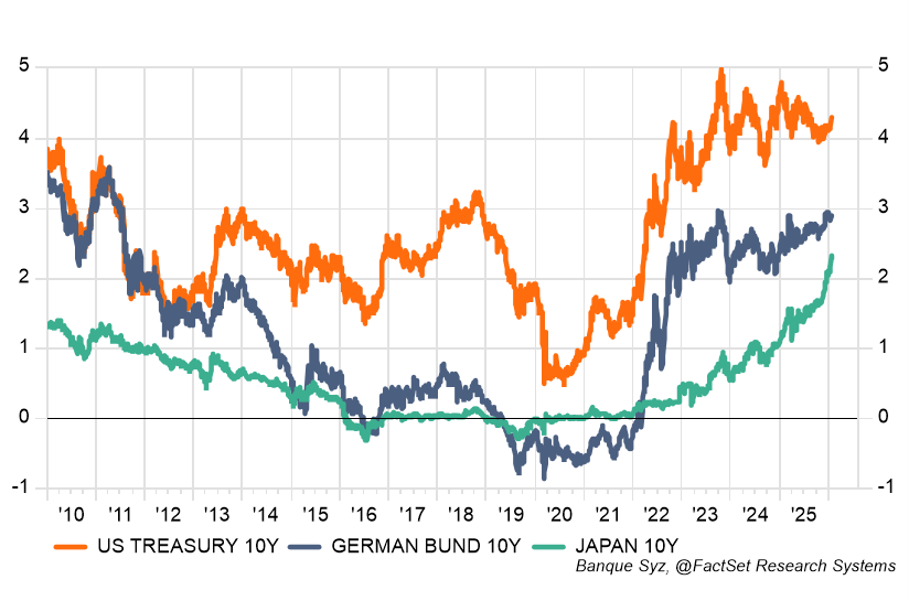 Japan stood out: 10yr JGB yields jumped 9bp to 2.19%, the highest since 1999, amid political uncertainty and expectations of a snap election. The move weighed on long-duration assets globally, reflected in negative returns across US Treasury ETFs, particularly in the belly and long end.