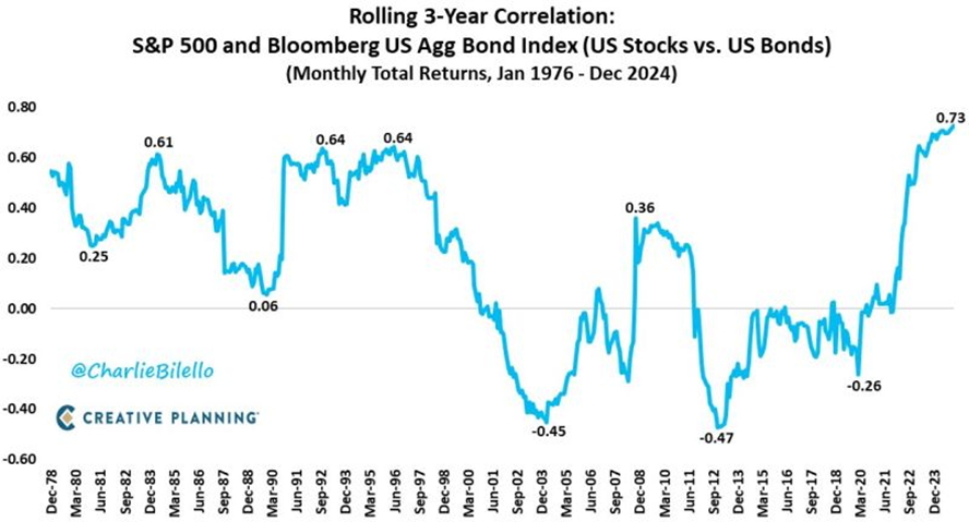 This increase in yields is exerting downward pressure on equity market valuations. As illustrated in the chart below, the correlation between the S&P 500 index and US Treasuries has reached an all-time high, based on a three-year rolling correlation.