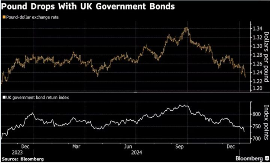 The pound sterling has reached its lowest level against the US dollar in over a year, as investor concerns over the UK's fiscal and inflationary outlook are weighing heavily on the valuation of British assets.