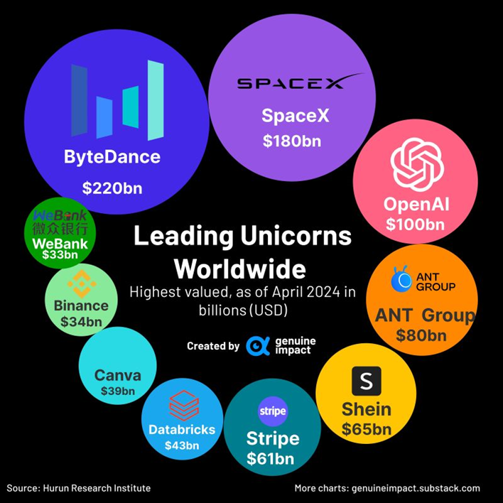 2024 was an exceptional year for private companies, with over 1,200 unicorns registered worldwide, compared with just 590 in 2021! A unicorn refers to a private company valued at over a billion dollars.
