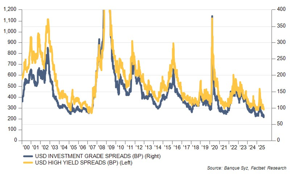 US Investment Grade spreads have compressed to record tights after the Fed’s latest move. Yields remain sufficiently attractive to sustained investor demand. With the Fed pivoting to easing, inflows into USD credit funds—particularly high yield—have accelerated.
