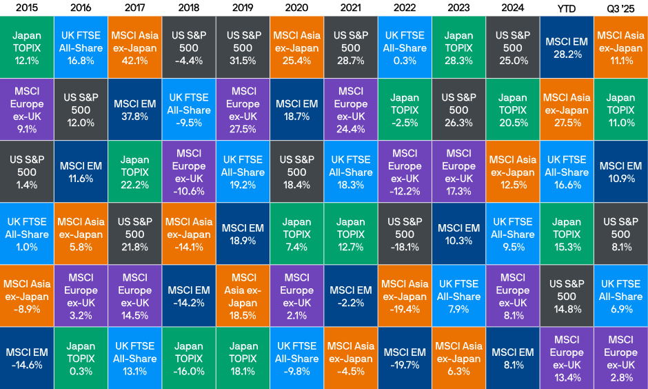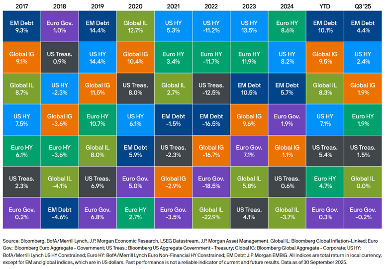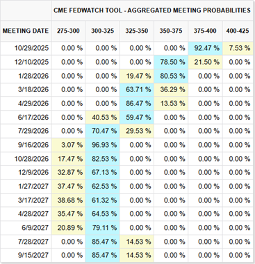 US headline inflation edged up from 2.7% to 2.9% in August, yet tariff passthrough proved milder than feared. As a result, market focus shifted from upside inflation risks to growing concerns over economic slowdown. While overall activity data remained solid, labour market conditions softened. In the three months to August, job creation averaged just 29,000 per month, compared with 99,000 in the prior three-month period. The Bureau of Labor Statistics also revised payroll figures down by 911,000 for the year to March 2025, suggesting the economy was less robust than previously thought.