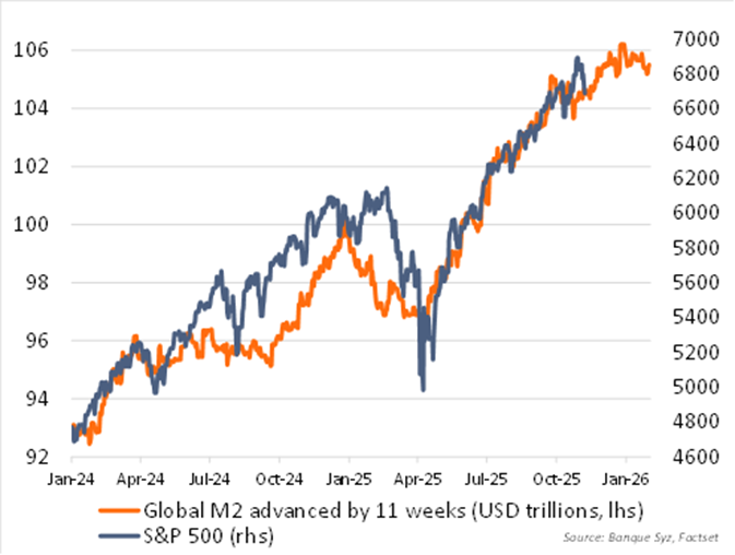 Our Global M2 proxy still point to a broadly supportive liquidity environment for risk assets through the end of the year. It suggests a less supportive—but not negative—liquidity environment and momentum for the first weeks of 2026.