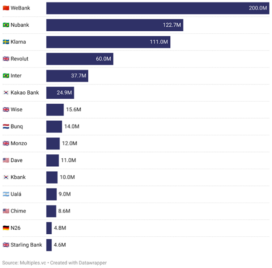 Source: Customer base of the largest neobanks, Multiples.vc