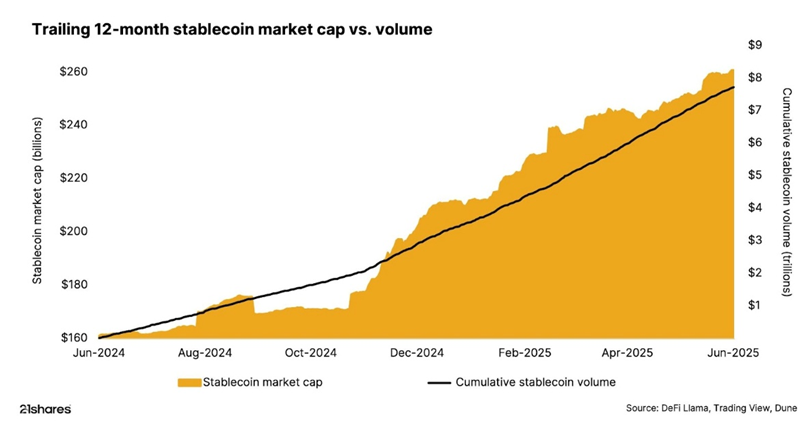 Stablecoin adoption has exceeded expectations so far this year. Market capitalisation rose by $47.5 billion, extending the momentum from 2024 as over-the-counter transaction volumes grew from 46% to approximately 75% of total stablecoin activity in 2025. This surge was further validated in June, when Circle’s IPO became the most successful US public offering since 1980. Priced at $31 per share, Circle’s stock soared to $270 within days.