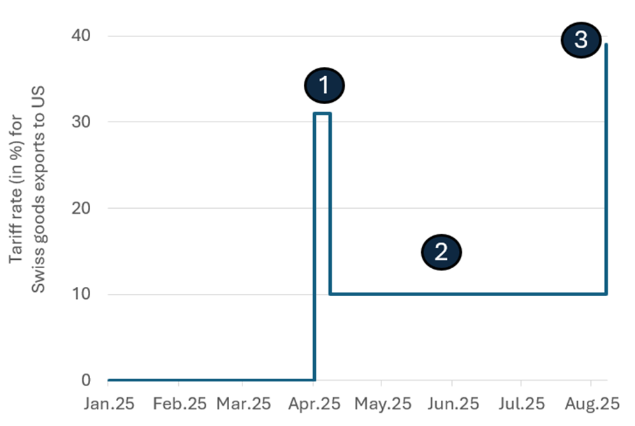 As of 7 July, the White House extended its reciprocal tariff pause as well as its 10% baseline tariff, pushing its expiration from 9 July to 1 August. Nonetheless, when 1 August arrived, Washington imposed a 39% reciprocal tariff on Swiss goods exports, catching Swiss officials completely by surprise. These measures affect a broad range of Swiss exports, while luxury watches, chocolates, precision instruments, and machinery are likely hit hardest. However, ambiguity persisted over whether pharmaceutical products and precious metals like gold would be exempted.