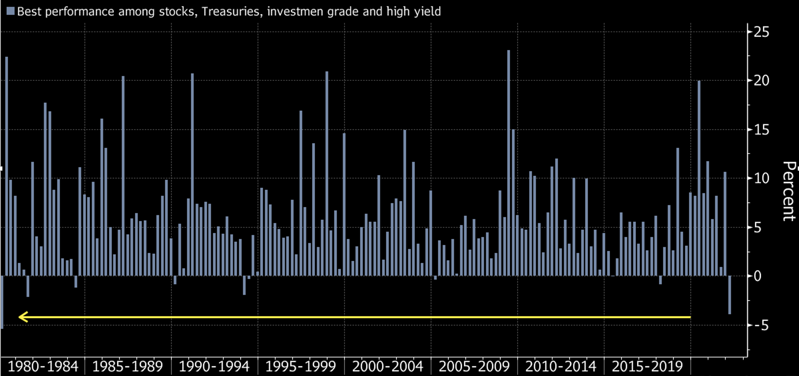 Across equity & fixed-income markets broadly, the ‘least- bad’ quarterly performance among US assets were declines of 4.9% (price return) in S&P 500. They were followed by a 5.6% fall in Treasuries. A model portfolio made of 60% US equities / 40% Aggregate US bonds recorded its 1st quarterly loss in 2 years. With the exception of commodities (see next story), there was no place to hide for investors. European equities were hit by the Russia-Ukraine conflict as the MSCI Europe ex-UK is down -8.1% over the quarter. Europe is a huge importer of oil and natural gas from Russia, which makes the area highly vulnerable to the sanctions. Despite some bright spots (see story 8), the MSCI Emerging Markets index also recorded a quarterly decline (-6.9%). A new round of Omicron cases and lockdowns in China weighed on Chinese markets on top of the broader geopolitical concerns. Japan is down -1.2% over the quarter.