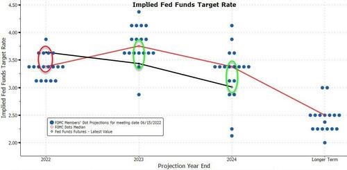 US interest rates expected by the market and projected by the Fed BEFORE Jackson Hole
