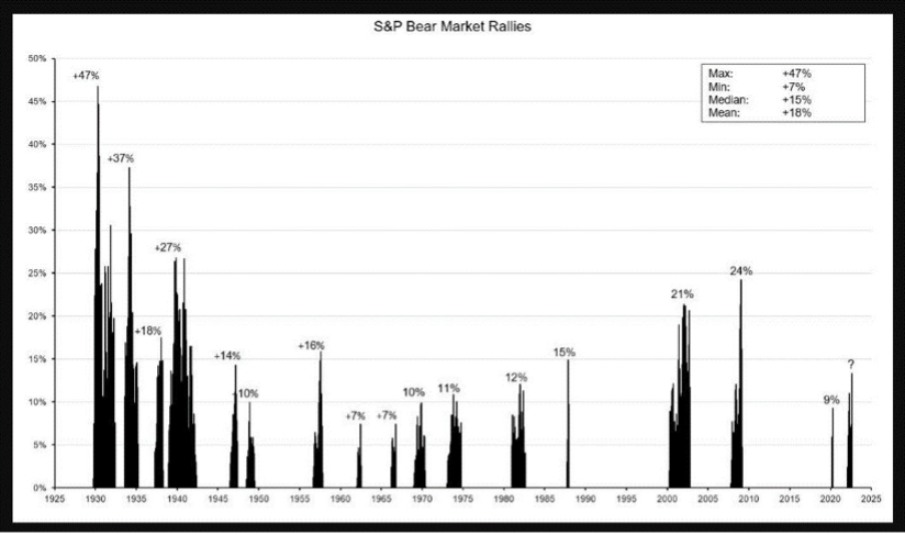 In this context, which investment strategy should we favor? With negative real rates, portfolios must remain invested in order to preserve our clients' purchasing power. But if we have recently increased our equity allocation slightly, our exposure to this asset class remains prudent and well below the percentages allocated during the previous bull market. At this stage, we believe that the current rebound is more akin to a "bear market rally" rather than the beginning of a new bull market. These are perhaps the most complicated market phases to manage because their amplitude and duration are very difficult to estimate. As the chart below shows, this type of rebound can sometimes be very dramatic and take many investors by surprise.