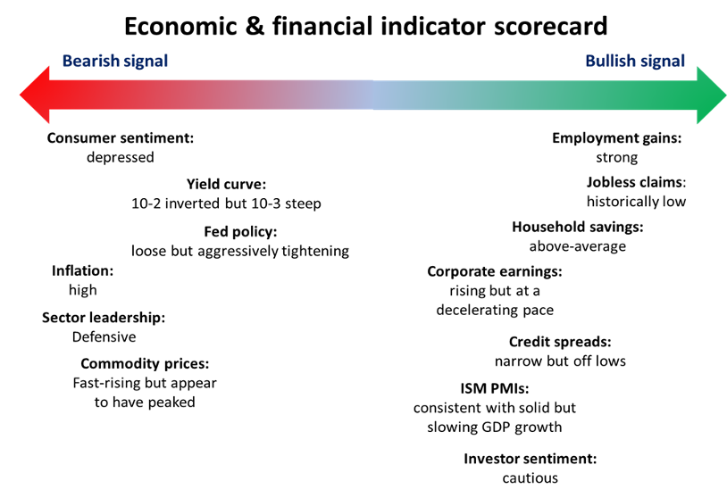 In summary, the latest macroeconomic data indicates that growth is about to slow down, but also that the probability of a recession seems low for the time being. In our last investment committee meeting, we dismissed the "stagflation" scenario as the one with the highest probability of occurring. While we expect inflation to remain well above the Fed's targets, we also believe that growth should remain above the long-term trend.