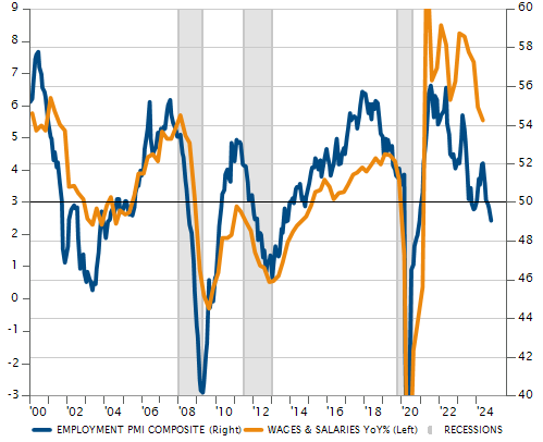 Gauges of the European labor market have been deteriorating recently and point to a decline in employment since August. Wage growth is therefore expected to slow down in the coming quarters