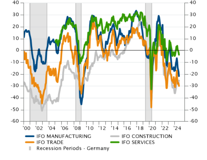 Confidence is depressed in all sectors of the German economy, at recession levels