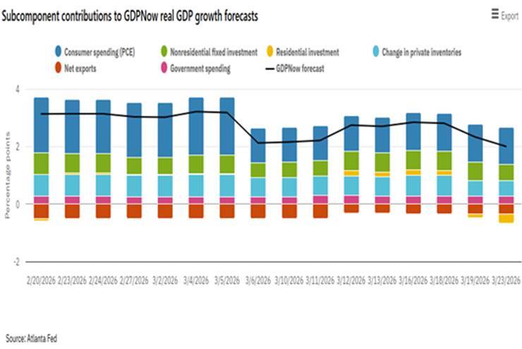 Growth of the US economy continues to show broadly solid momentum, but the energy crisis could hamper this trajectory. Revisions revealed softer Q4 data, mainly due to weaker consumption, but early‑2026 indicators point to continued resilience. Consumption appears to be rebounding after the temporary Q4 dip, and there are still no signs of a more sanguine downturn in core domestic demand.