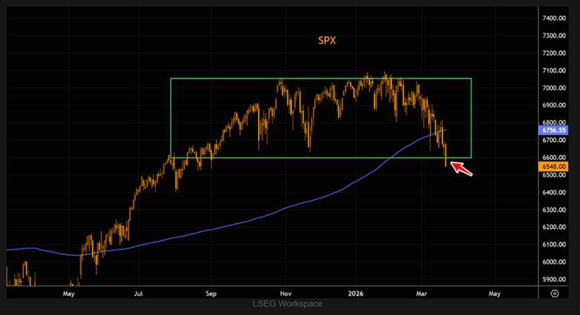 Equity markets remain very volatile. Last week, the S&P 500 itself closed below 6,600, breaking decisively through a major consolidation range and trading well below its 200-day moving average. The Nasdaq is in a similar position, with its 21-day moving average threatening to cross below the 200-day — a bearish technical signal.