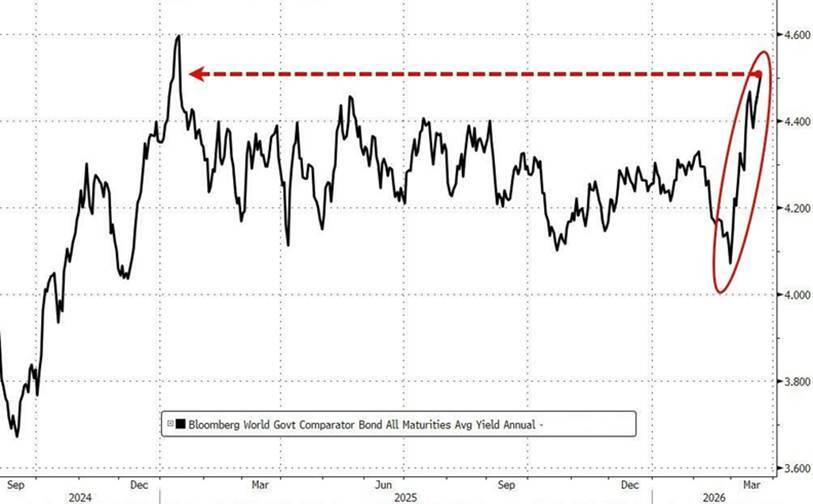 The global bond market had a bruising week. US 10-year Treasury yields spiked 13 basis points on Friday alone, reaching 4.38% — the second-largest single-day move since the April 2025 Liberation Day sell-off. Since early March, the 10-year yield has risen by 45 basis points, the fastest pace of increase in nearly a year. The sell-off in bonds is being driven by three interlocking forces: soaring oil prices inflaming near-term inflation concerns; hawkish signals from both the Fed and the Bank of England; and forced deleveraging by hedge funds that had been running leveraged positions in the Treasury market and are now being compelled to unwind at a loss.