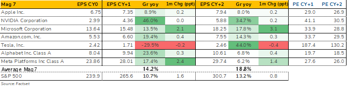 Chart 3: Mag-7 earnings growth is on track to accelerate further to 19% YoY next year