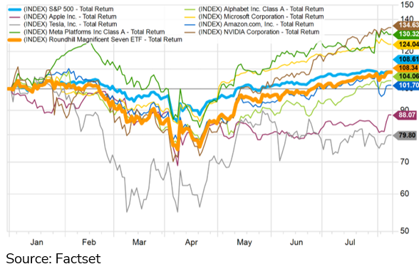 Early this year, investors wondered if the Mag-7 were morphing into the “Lag-7”. After a sluggish start, the group has staged a striking Q2 comeback. Six of the seven have now reported Q2 earnings, and results were stronger than ever – reinforcing their status as market leaders with massive scale, deep moats, strong profits and cash flows, and superior return on capital.
