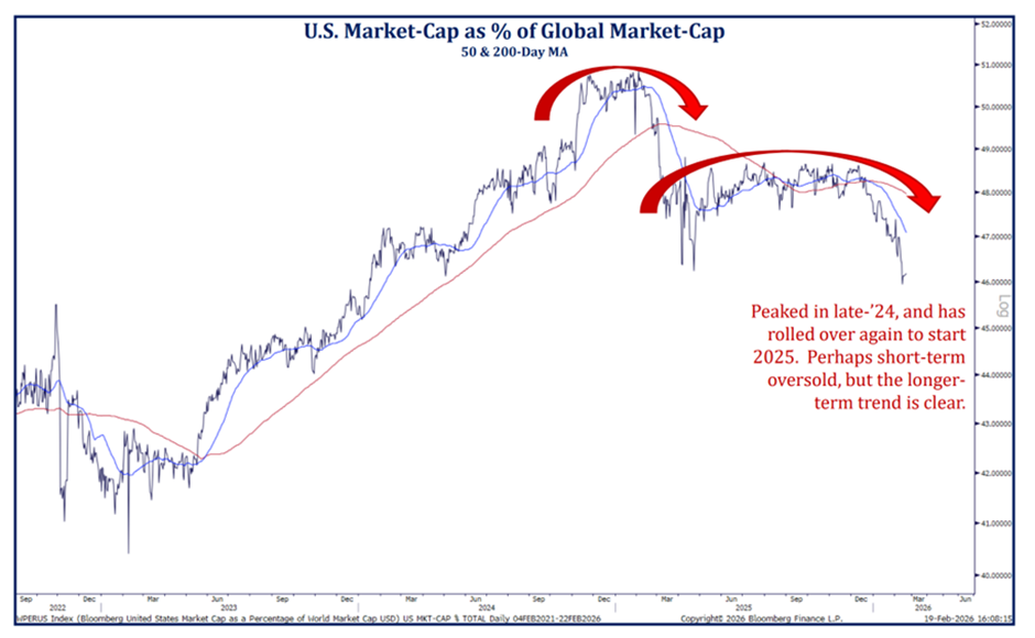 Indeed, while we keep a large allocation to US stocks, we find value outside the US. The shift from US to international markets that started in Q2 of 2025 seems to be gaining momentum, as shown in the chart below.