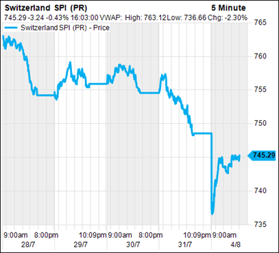 On 4 August, after an initial sell-off, Swiss equities recovered throughout the day, and are today higher than prior the announcement on tariffs and drug prices.
