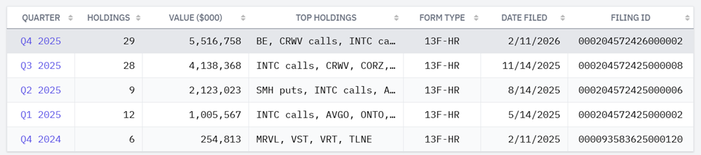 Source: Situational Awareness 13F Filing, Q4, 2025, 13f.Info