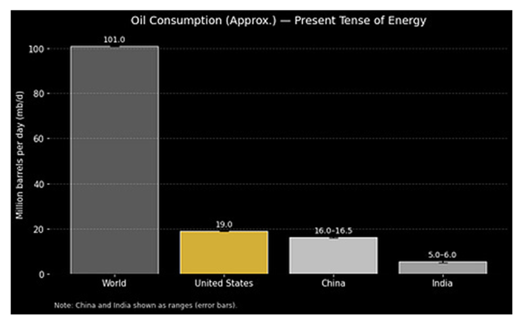 Oil markets are tightening structurally. Global consumption now exceeds 101 million bbl/d, led by the United States, China, and rapidly growing demand in India. From a market perspective, the near-term effect may be a temporary rise in geopolitical risk premia. Over time, sidelined Venezuelan supply, close to 1 million bbl/d, could weigh on oil prices and support risk assets.