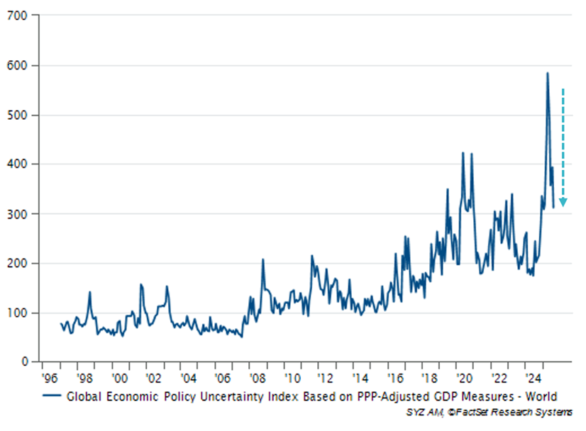 Chart 1: Global uncertainty around the new US trade tariffs decreased substantially