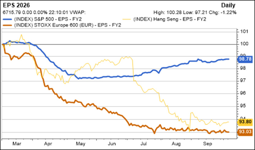 Earnings revisions for 2026 are stabilising globally with US revisions flat to positive and negative revision in Europe and China stabilising: