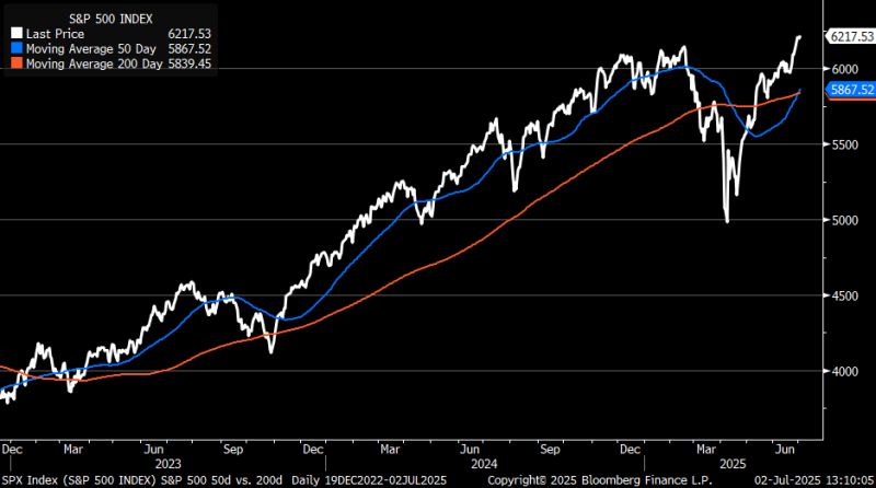 A golden cross for the S&P 500 (the S&P 500's 50d moving average has crossed above its 200d moving average).