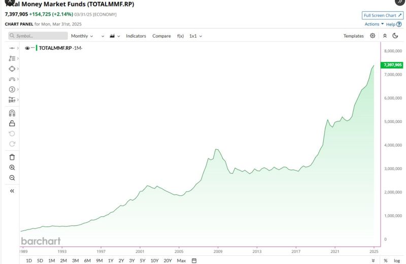 A staggering $7.4 Trillion is now sitting in Money Market Funds, a new all-time high 🚨🚨
