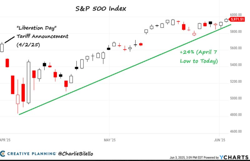 After a 24% rally from the April lows, the S&P 500 is now up 5% since the "Liberation Day" tariff announcement.