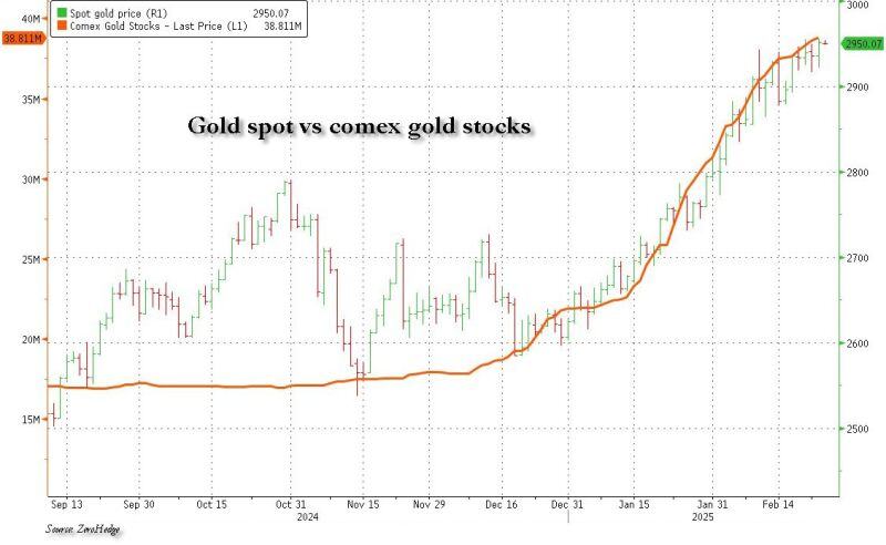 Another day, another 220K oz of gold delivered to comex vaults, another record high above $2950.
