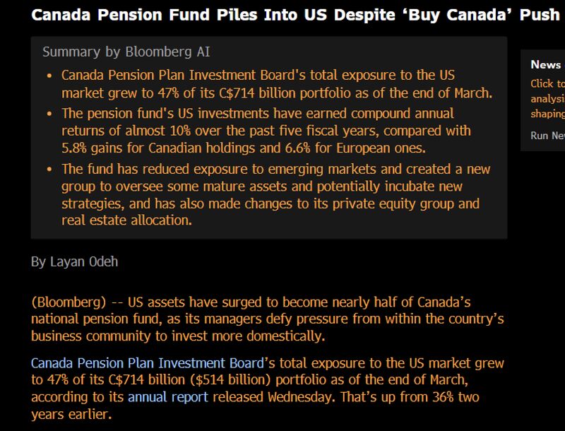 Canada's national pension fund piled into US market in Q1 despite the 'Buy Canada' push.