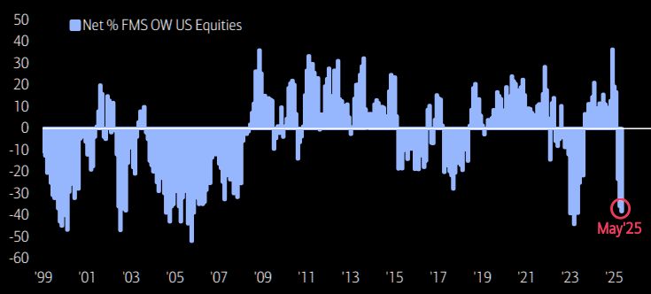 Fund Managers have missed out on the recent stock surge after recently reducing their equity exposure to the lowest levels in 2 years 👀 Source: Barchart, BofA