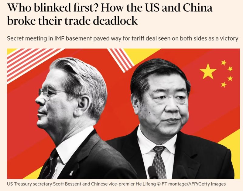 The FT reports that a secret meeting between US and China which took place in IMF basement paved way for tariff deal seen on both sides as a victory 👇