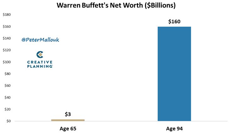 Incredible stat: 98% of Warren Buffett's current net worth of $160 billion came after he turned 65.
