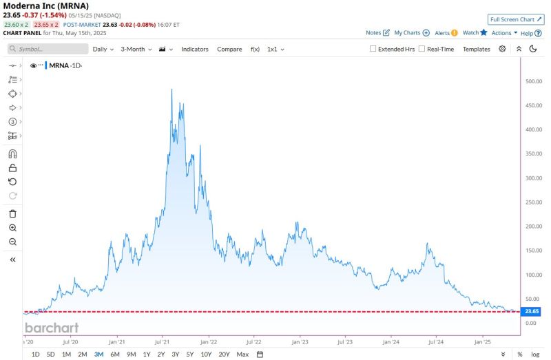 $MRNA Moderna falls to its lowest closing price since the onset of Covid